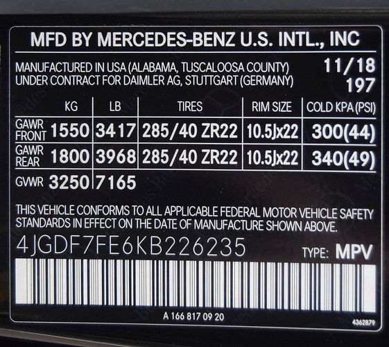 Stock #: 4JGDF7FE6KB226235