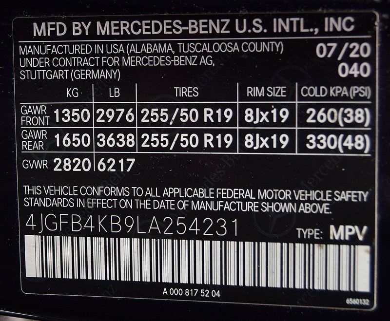 Maximum roof rack load: 220 lbs. maximum roof rack load